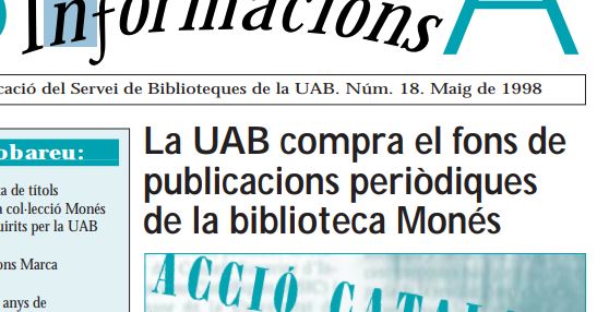 Biblioteques de la Universitat Autònoma : Es reprodueix part del butlletí on es feia constar l’adquisició dels fons de revistes periòdiques i diaris :