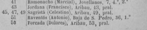 Hem localitzat al “Anuario-Riera” de… una persona amb el seu nom residint al carrer Aribau 53 principal de Barcelona, i amb la consideració de “propietària”; hem de pressuposar que es tracta de la mateixa persona, però ens mancaria una segona referència per ratificar-ho.