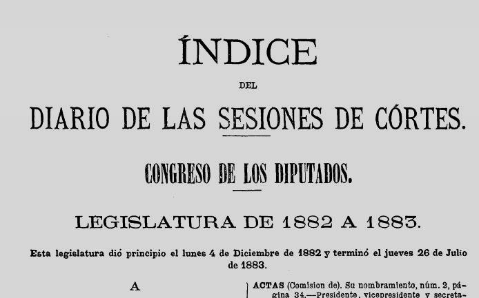 Tot l’índex què inclou les lleis tramitades, i altres gestions fetes, es pot consultar a la web de : congreso.es, a l’apartat de “História y Normas”, “Papeles para la História”, “La restauración 1874-1923”.