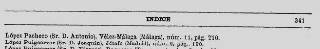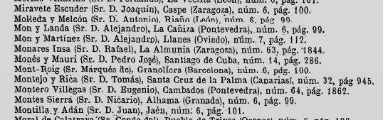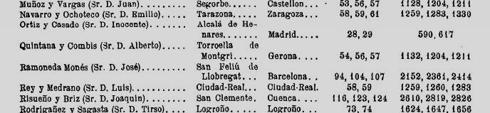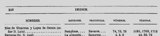 En els índexs del “Diario de las Sesiones” només s’hi esmenten a la part final aquells diputats que s’han incorporat de nou al Congrés, en substitució d’algun altre. Per això no hi trobem repetit a cada període de sessions els titulars de cada districte, què ho són per a tot el període escollit
