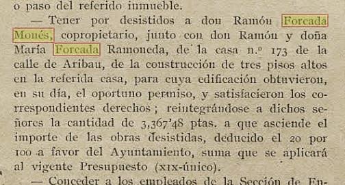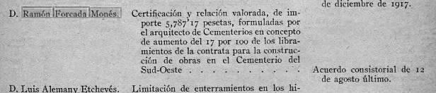 Noticia a “Gaceta Municipal de Barcelona” num. 33, pag.8, de 15 agosto de 1918 :