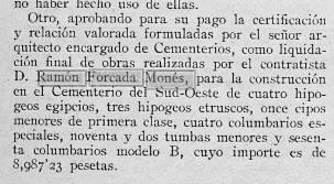 Noticia a “Gaceta Municipal de Barcelona” num. 31, del 8 d’agost de 1927 :