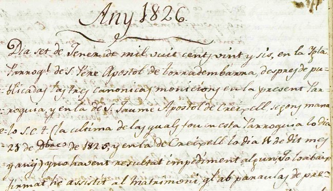 El seu casament el trobem a la diapositiva 260, del llibre de matrimonis de 1802-1851 de Torredembarra: