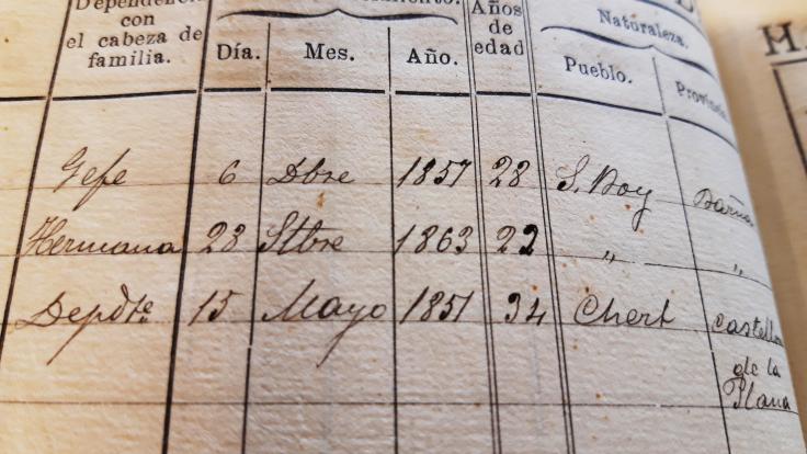 Localitzats tots dos al Cens d’Habitants de Sant Boi de Llobregat de 1886, nascuts al 1857 i 1863 respectivament, a Sant Boi, on estant solters, i tenen aproximadament 29 i 23 anys. No hi consta ofici mes enllà que propietari i tenen a casa un jornaler, que fa uns 11 anys que el tenen.