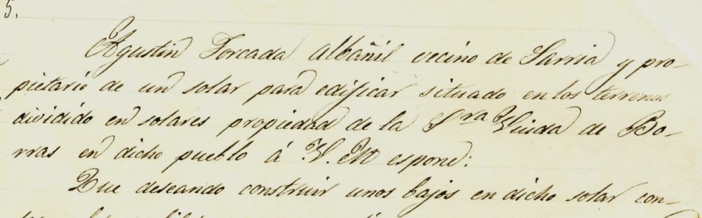 Al principi de la instancia, diu que ell es el propietari de la finca (de la qual només sabem el nom de propietari i de que ha estat segregada en diferents solars), i que hi desitja construir una planta baixa.
