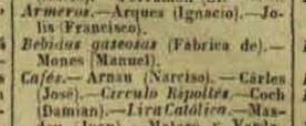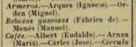 En aquestes dues referencies que us acompanyem, del 1884 i 1886, hi figura com a titular d’una fabrica de begudes gasoses, activitat que requereix d’uns coneixements i d’una certa infraestructura, tat de producció com de repartiment.