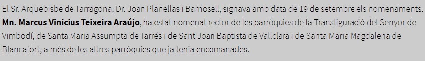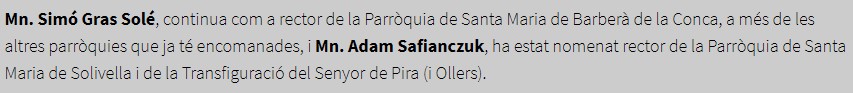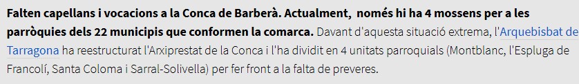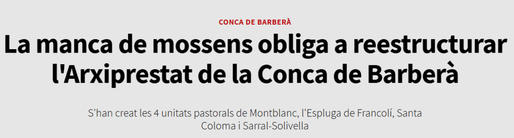 Però no es tracta de si tenim mossens o no, es tracta de l’atenció de moltes persones que han dipositat la seva vida i les seves esperançes amb els valors que l’església ha defensat i que ara malauradament veuen com es queden amb menys mises, que tenen una fe i una esperança amb el Crist, que han vist com els seus avantpassats també han trobat a l’església la resposta a les seves pregaries, i amb els sants i devocions propies de cada lloc.