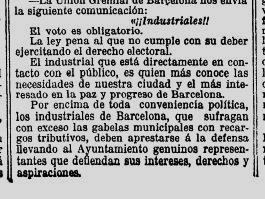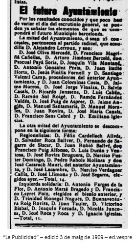 1909 – Campanya eleccions Municipala – Ajuntament de Barcelona