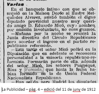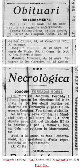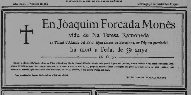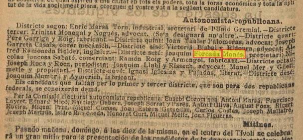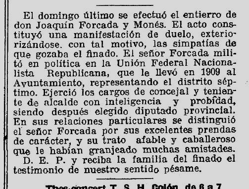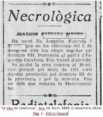 Aquesta entrada ens apropa al Joaquim Forcada polític, de la seva vessant publica, de la implicació a l’Ajuntament de Barcelona, a la Diputació, a la Mancomunitat, amb el Partit Republicà; les activitats amb el seu germà Ramon, tindran espai en altres entrades d’aquest mateix bloc.