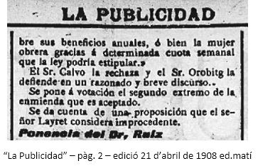 Noticia al diari “La Publicidad : eco de la industria y del comercio, diario de avisos, anuncios y …” edició 27 d’abril de 1909 – edició del matí :