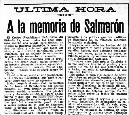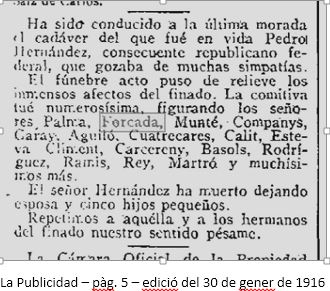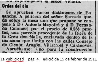 Noticia a “La Vanguardia”, pag. 3, edició del 6 de març de 1911 :