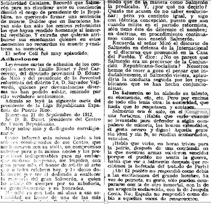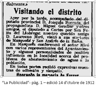 Noticia a “La Vanguardia” pag. 5, edició del 27 d’abril de 1909