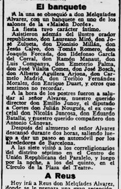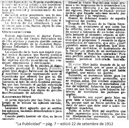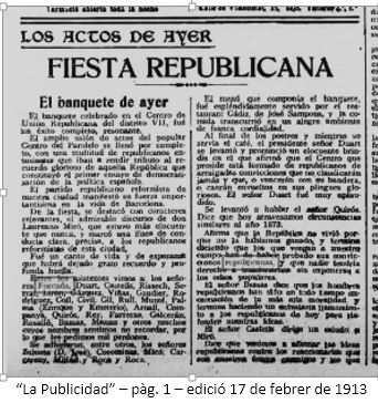 Premis, homenatges significatius: Acte de suport i homenatge al Centre d’Unió Republicana del districte VII (12/07/1912).