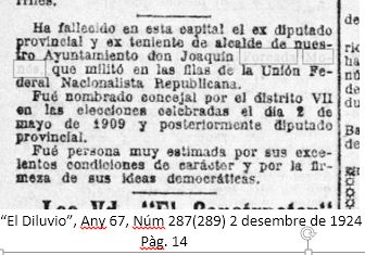 He replantejat aquesta entrada per reflectir els fets que la prensa de l’època i les ressenyes que hi surten, ens apropen a les activitats i entitats en que si va implicar.
