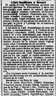 Noticia a “La Vanguardia” pag. 3, edició del 1 de maig de 1909