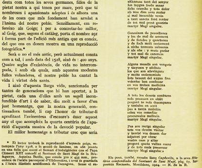 Anticle que apareix amb motiu del 400 aniversari de l’impressió dels primers goigs del Sant, que citem i reproduim mes amunt :