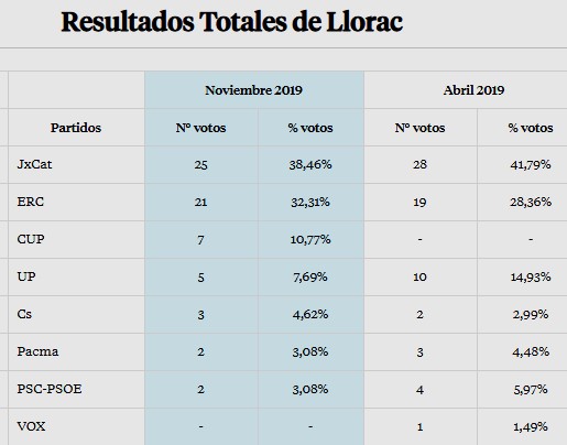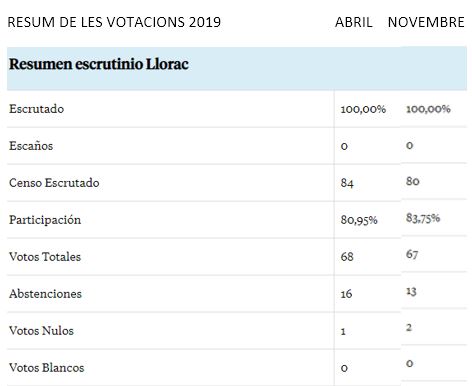Dates votació : 28 abril de 2.019 i 10 de novembre de 2.019.