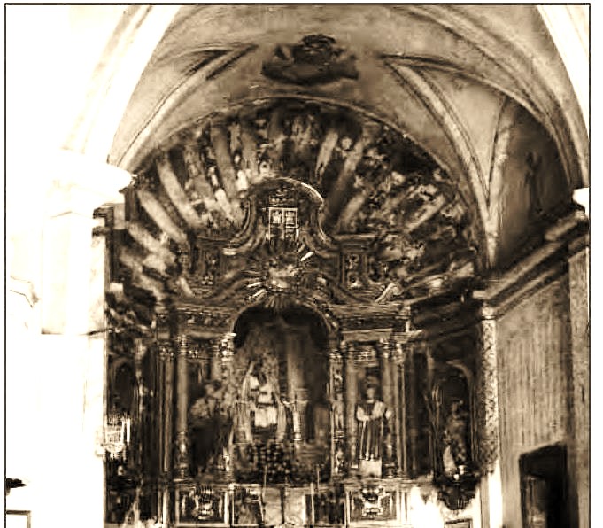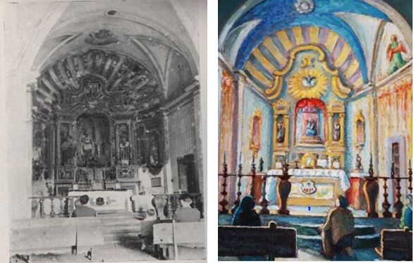 c) L’escut al frontal de l’altar principal també s’identifica en ambdues imatges.