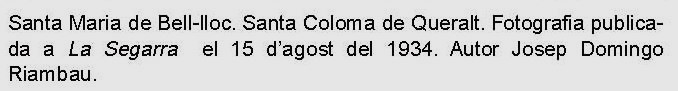 En el llibre esmentat s’ofereix una fotografia de com era l’església de Belloc abans de 1936 i, per tant, un element que ratifica la tesi de la primera entrada; m’ha semblat poc respectuós el comentari que fa de la imatge de la Verge, a la pàg. 14 i que reprodueixo, per al lector, que no tingui a mà aquest llibre d’en Carlos Cid :