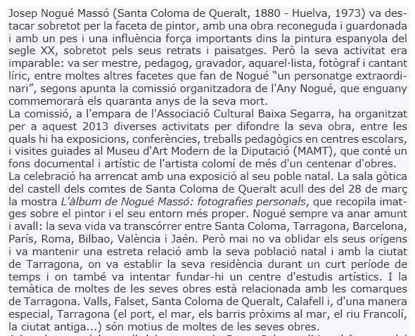 Us adjunto la ressenya que en va fer l’any 2013, el diari “Avui”, d’aquella exposició: