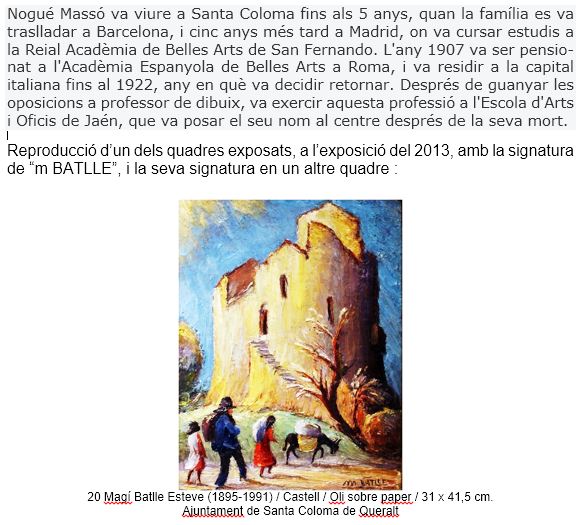 En la seva resposta, hem ratifica el lloc com de L’Església de Bell.lloc de Santa Coloma, i l’autoria del quadre d’en Magí Batlle i Esteve, que va morir l’any 1991, a Santa Coloma. Junt amb el seu germà (també pintor) varen estudiar a la Llotja de Barcelona.