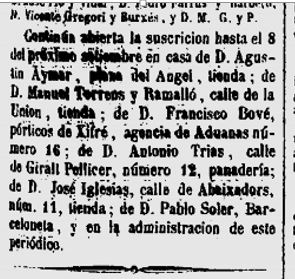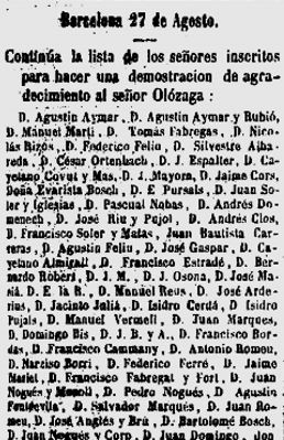 Cercant a les hemeroteques he trobat aquesta inserció al diari “La Corona”, d’una subscripció/agraïment al Sr.Salustio Olázaga, el qual ressenyarem mes avall.