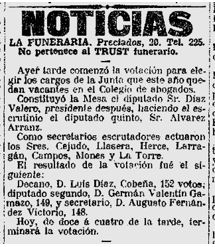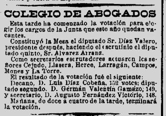 Al juny de 1910, participa com en el recompte de les votacions per a l’elecció d’un membre de Junta del “Colegio de Abogados de Madrid) (Imatge 12).