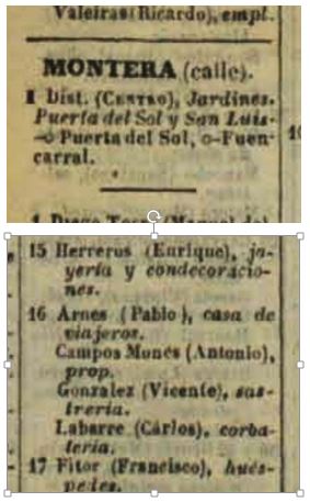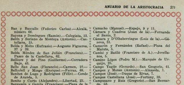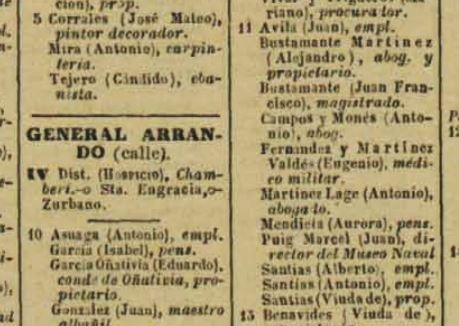 Al 1917, apareix a la publicació “Le Tout Madrid” (Imatge 15), al carrer Alameda 1. (carrer paralel al Paseo del Prado, que començaria a l’alçada de Museu-Jardi Botanic, i que finalitza al carrer Atocha, i que es un carrer dels laterals del CaixaForum Madrid).