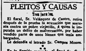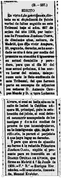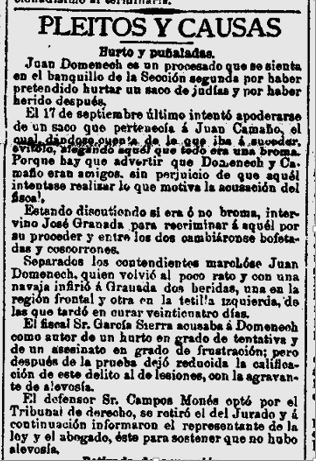 En els anys 1909 i 1910 apareix a la premsa com a lletrat en diferents casos judicials, actuant coma defensor, en judicis poc rellevants (Imatges de 7 a la 11 i de la 13 a ).