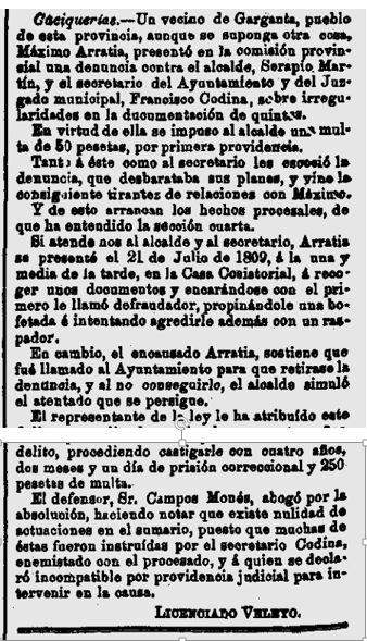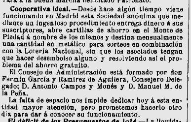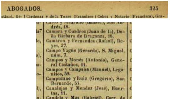 A la imatge 6, es veu la ressenya que en fa el diari “La Epoca”, indicant “… con el distinguido abogado granadino D. Antonio Campos Monés…”, referència que caldria aprofundir si es que té dos despatxos (a Granada i a Madrid), que té un arrelament a Granada, o es conegut per la seva etapa a aquesta ciutat.