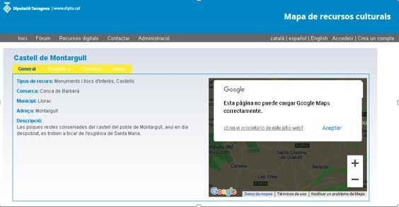 Aquesta “confusió” es produeix a la web del Àrea de Cultura de la “Diputació de Tarragona”, concretament al “Mapa de recursos culturals” que reproduïm en la consulta d’aquesta setmana :