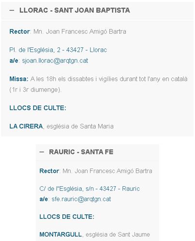 - Igualment en la consulta al web del Arquiebisbat s’hi hauria d’incorporar el telèfon parroquial, més directe i efectiu, en lloc dels diferents correus electrònics que no es llegeixen de forma immediata.