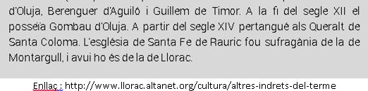 En una consulta a la nova web de l’Ajuntament de Llorac, s’esmenta que l’església de Santa Fe de “Raurich” depèn de la de Llorac :