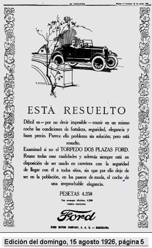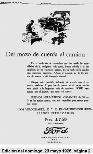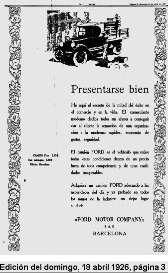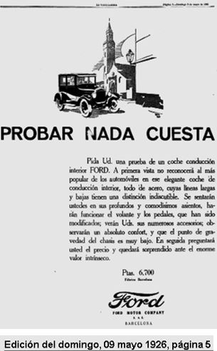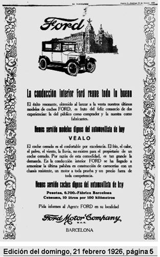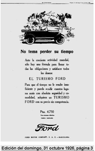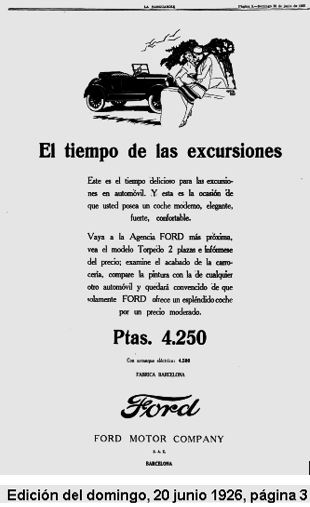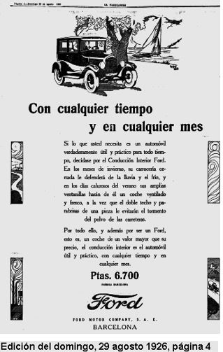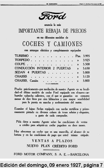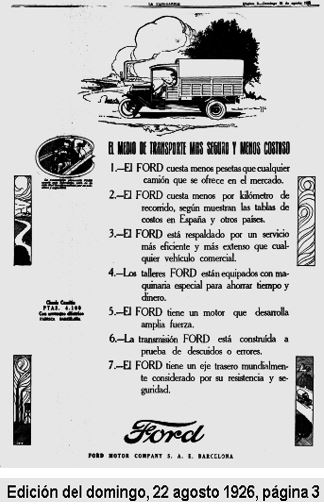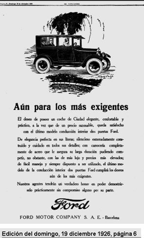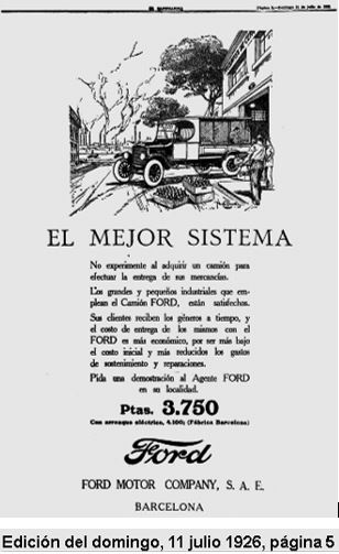 Anuncis publicats al mes de gener del 1926, oferint vehicles utilitzats per la propia empresa Ford, i que es compraven directament a la fabrica, al paragraf anterior.