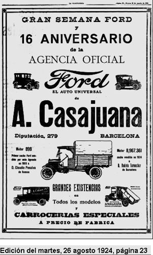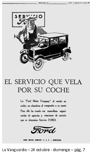 Alguns concessionaris també aprofiten la seva vinculació amb Ford Motor, amb anuncis com aquest de 1924 :