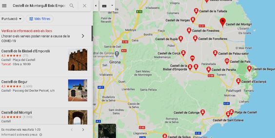 Si ho feu per “Maps” (ubicació), mostra el mapa de la província de Girona, i l’ubica al Castell de Montgrí (suposo per coincidència amb les quatre paraules del començament…) :