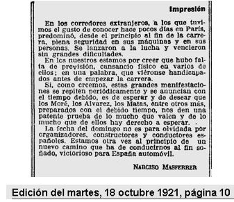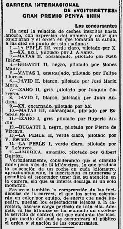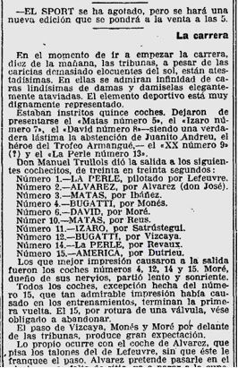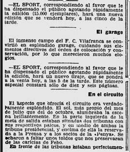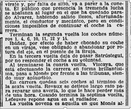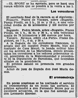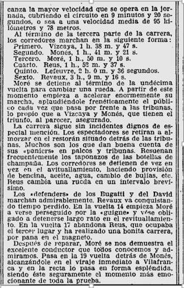 Reproduim la ressenya d’aquesta cursa, al circuit de Vilafranca del Penedes, de l’any 1921 (casi 100 anys), i que ens apropa a detalls de la seva organització, i la classificació d’en Monés a la segona posició :