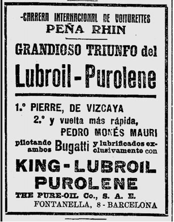 Una de les aficions d’en Pierre Monés també va ser com a pilot de cotxes de la marca “Bugatti”, a diferents circuits.