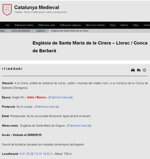 En aquest cas, a “Catalunya Medieval”, els hi vaig escriure un mail, amb data 23 de juny, indicant el que diu el titular d’aquesta entrada. L’errada, segurament, s’ha produït perque s’ha agafat aquesta informació del Inventari del Patrimoni Artistic de la Generalitat, al qual ja vaig demanar la seva rectificació i que aquest fet està comentat en una altra entrada d’aquest bloc.