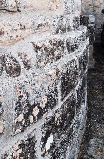 Hi a una qüestió important : aquest tipus de “carreu” i la seva estructura de peces ben tallades, conforma la imatge de un edifici cuidat (potser una mica interior a l’actual), però aquest tipus de pedra, d’un color grisos, no es troba en cap altra paret o fonament de la construcció actual i això ens faria pensar en que va ser desmuntada la pedra o aprofitada per a altres edificacions, per exemple el convent de Belloch (si seguíssim la teoria exposada abans); avui en dia no tenim elements com per suposar que aquestes pedres podrien haver format part de Convent o d’alguna casa depenent, però si que la proximitat al lloc, i el fet de que quedés sense protecció ni utilitat podria haver estat un element afavoridor de la seva utilització.