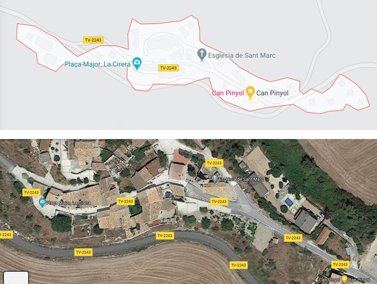 De tant en tant, venen vehicles (orientats, millor dit mal orientats, per el “google maps” (el GPS o altres aplicacions que l’utilitzen), en direcció a Vallfogona. El sistema els recomana passar per La Cirera (TV2243), enlloc de continuar per la carretera TV224, com seria la continuació normal de la mateixa. Potser, l’errada, es produeix en que ambdues carreteres (que es veuen sobre el mapa), deu ser uns metres mes curta una que l’altra.
