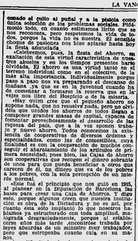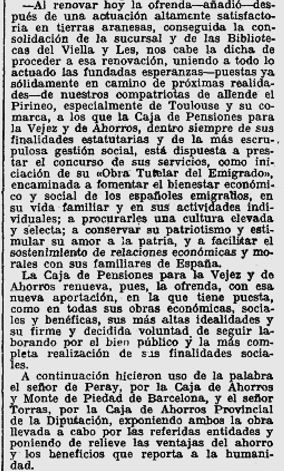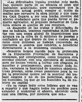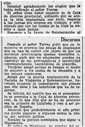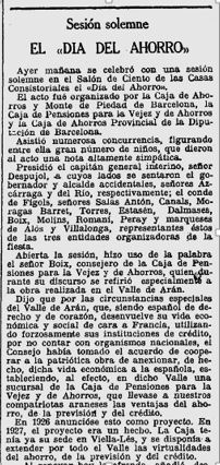 Al desembre hi trobem una ressenya de l’intervenció del diputat Sr. Torras, en el sentit d’agrair el suport de la Diputació a les activitats de la Caixa Provincial i l’intenció de que la mateixa assoleixi el lideratge entre les caixes.