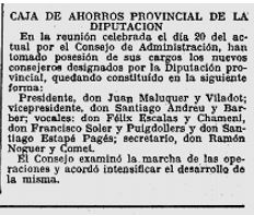 x El 23 de març consta que s’ha constituit el nou Consell d’Administració de la Caixa d’Estalvis Provincial, amb esment dels membres que la formen.