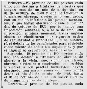 x El 1 de novembre la Caixa d’Estalvis Provincial fa la convocatoria de diferents premis, beques, i ajuts a treballadors, joves i alumnes, clients de les oficines de l’entitat i que reuneixin criteris d’habitualitat,comajut i foment de l’estalvi popular.