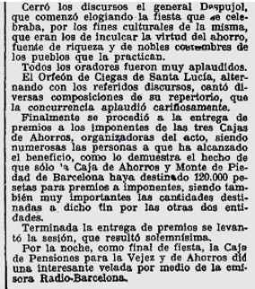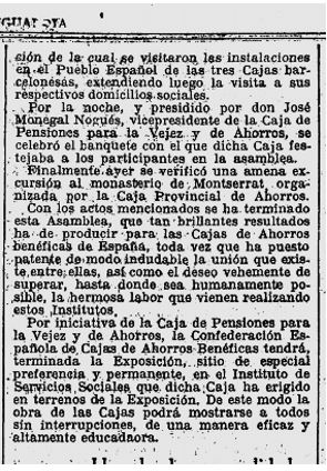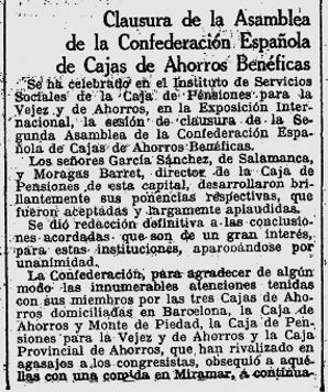 x El 29 de juny, es fa la cloenda de la II Assemblea de la Confederació Espanyola de Caixes Benefiques, que a mes de les notables conclussions de la trobada, les tres caixes amb seu a Barcelona, van fer els honors i varen invitar als participants a diferents esdeveniments i concretament la Caixa d’Estalvis Provincial, va organitzar una excursió a Montserrat.