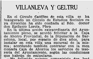 A l’octubre del mateix any 1928, trobem la noticia de que l’Ajuntament de Vilanova i la Geltru felicita a la Caixa d’Estalvis Provincial, per haver contractat un local per a la seu de l’oficina a la població, i de l’acord del Consistori de que els serveis de Tresoreaia de l’Ajuntament es contractarien amb aquesta entitat.