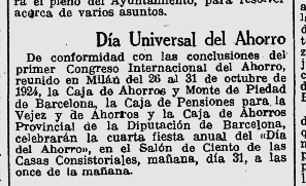 x L’u de novembre es fa esment de la celebració de la V Festa de l’Estalvis, que com en altres anys es va fer al Saó de Cent de l’Ajuntament, organitzat per les tres caixes barcelonines, amb l’assistencia d’autoritats i representats de les diferents institucions, i on es varen repartir premis i llibretes per incentivar la diada, i les aportacions que fan les caixes en la promoció de l’estalvi i d’iniatives socials que patrocinen. L’acte va comptar amb dues conferencies que varen posar de relleu la tasqca que es desenvolupa a traves d’aquestes entitats.
