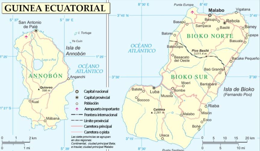 b) Fernando Poo (ara Bioko, i desde 1969 Malabo – antiga Santa Isabel- es la capital del pais) :