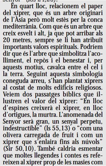 Font : Article de Josep Gordi “Els valors cristians dels arbres” (2011)
