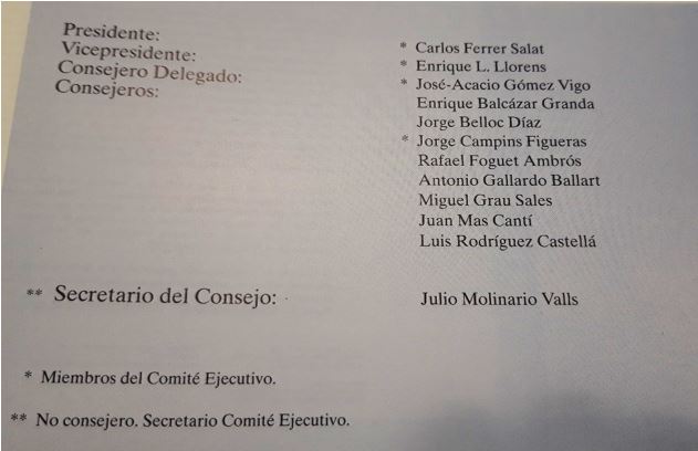Jo vaig ser-hi a aquesta Junta d’Accionistes, que venien del meu pare; no vull fer cap altra comentari. Les paraules del President, en Carles Ferrer Salat en deixen bona constància. En algun moment haurem de fer justicia, i agrair als treballadors, als accionistes i a la gent que va donar el millor d’ells mateixos perque aquesta entitat, fos una realitat.